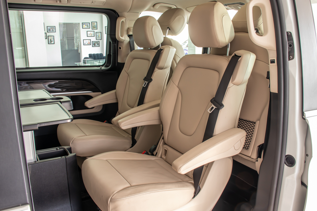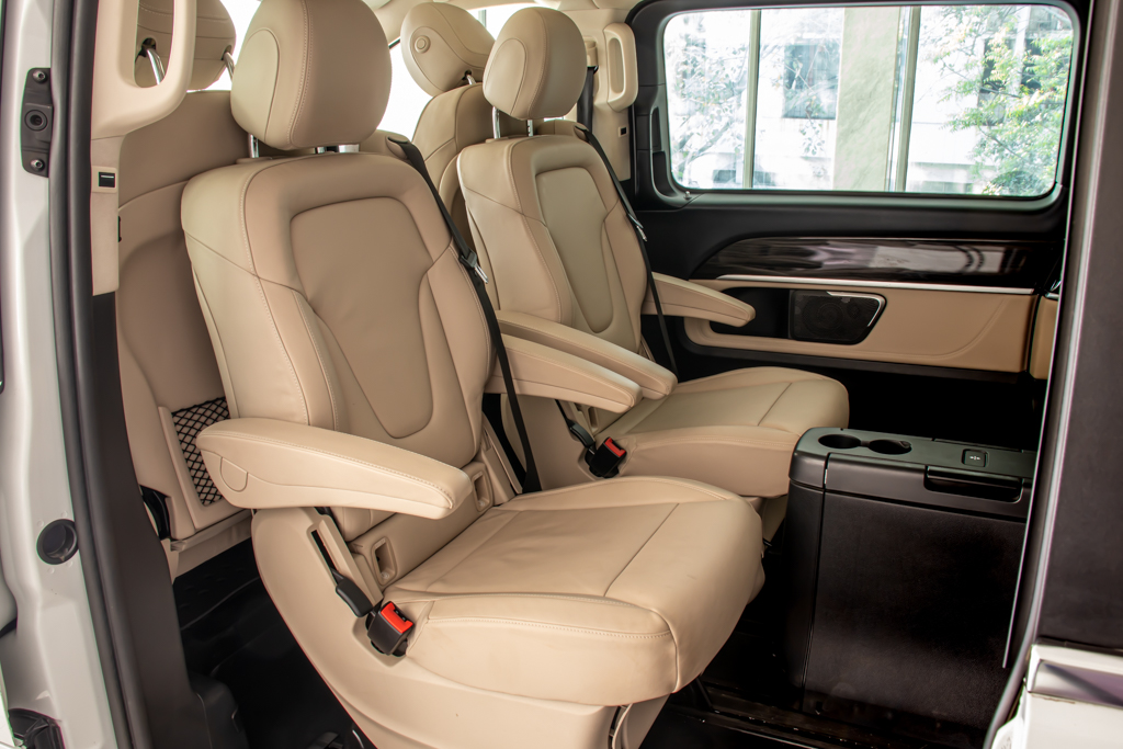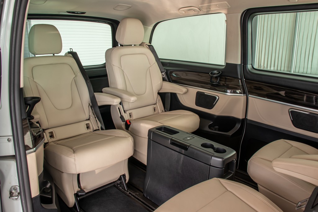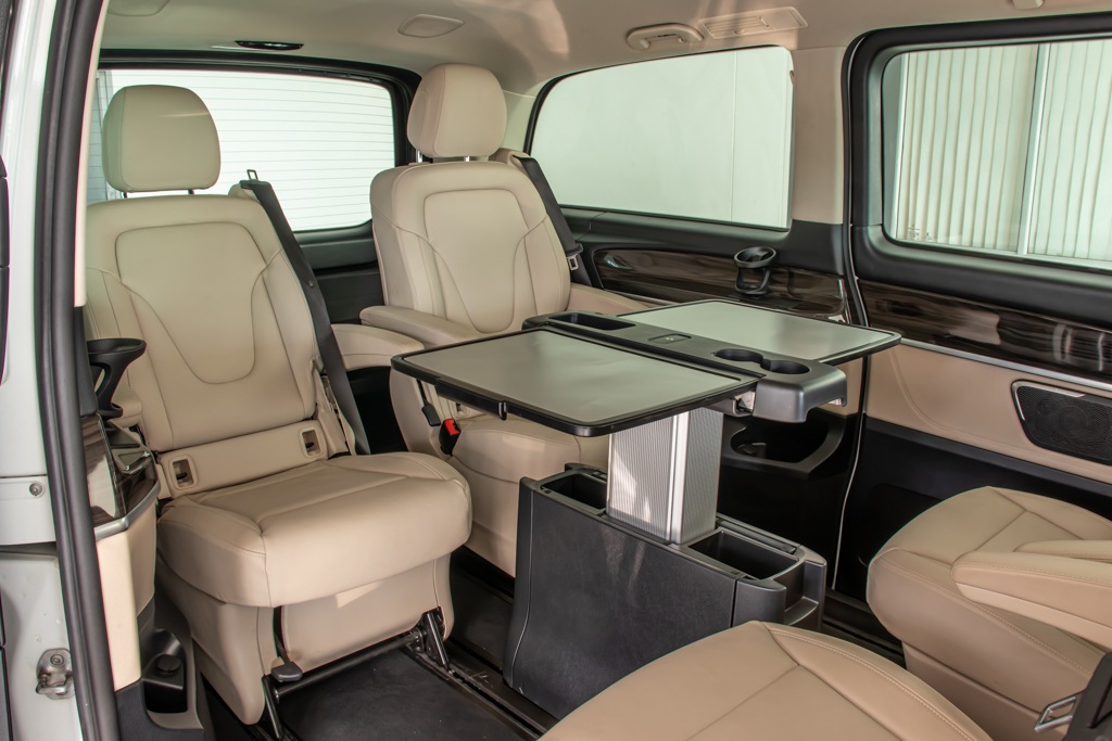 "Variable Seating Configuration: - Seats can be swiveled by 180° - All rear seats are foldable, slideable and easily removable - The back of folded seats can be used as a table Active retainer for sliding rear door Rear Table Package Separately opening rear window EXCLUSIVE Interior Design package"